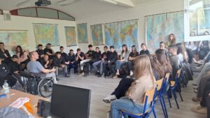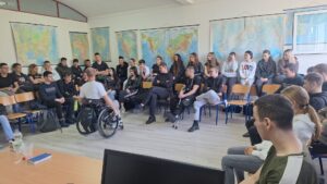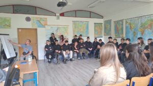 Matija Gorjanec učenicima se obratio na izravan, iskren i autentičan način, bez uljepšavanja i bez distance. Upravo je takav pristup ostavio snažan dojam na naše učenike, koji su predavanje pratili s velikim interesom, pozornošću i poštovanjem.