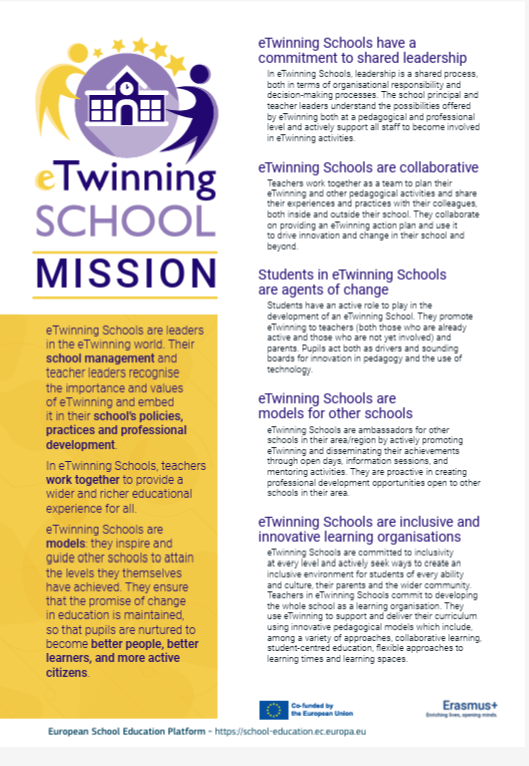 U današnje doba modularne nastave ovakve suradnje su poželjne. Misija eTwinning škole se nalazi u nastavku.