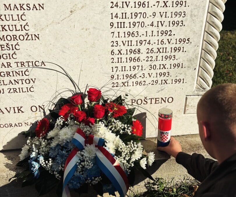 Dana 14. studenoga naša se škola prisjetila svih žrtava Domovinskog rata te bivših učenika naše škole koji su položili život za našu slobodu. Tom su nam se prigodom obratili profesorica Nives Pedisić i profesor Denis Žunić, koji su nas podsjetili na veličinu onih koji su dali svoje živote. Pred spomenik smo položili vijenac i upalili svijeću koja nas podsjeća na život vječni. Program smo završili zajedničkom molitvom.